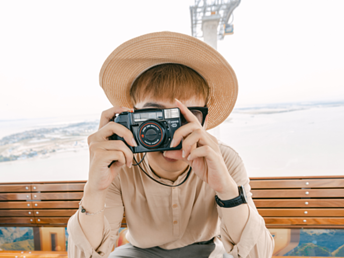 Du khách check-in-trên cabin cáp treo.