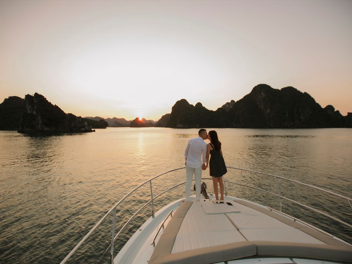 Bữa tối trên boong với ánh nến và tiếng sóng rì rào là khoảnh khắc khó quên, đặc biệt dành cho các cặp đôi muốn lưu giữ kỷ niệm đáng nhớ trong chuyến du thuyền.